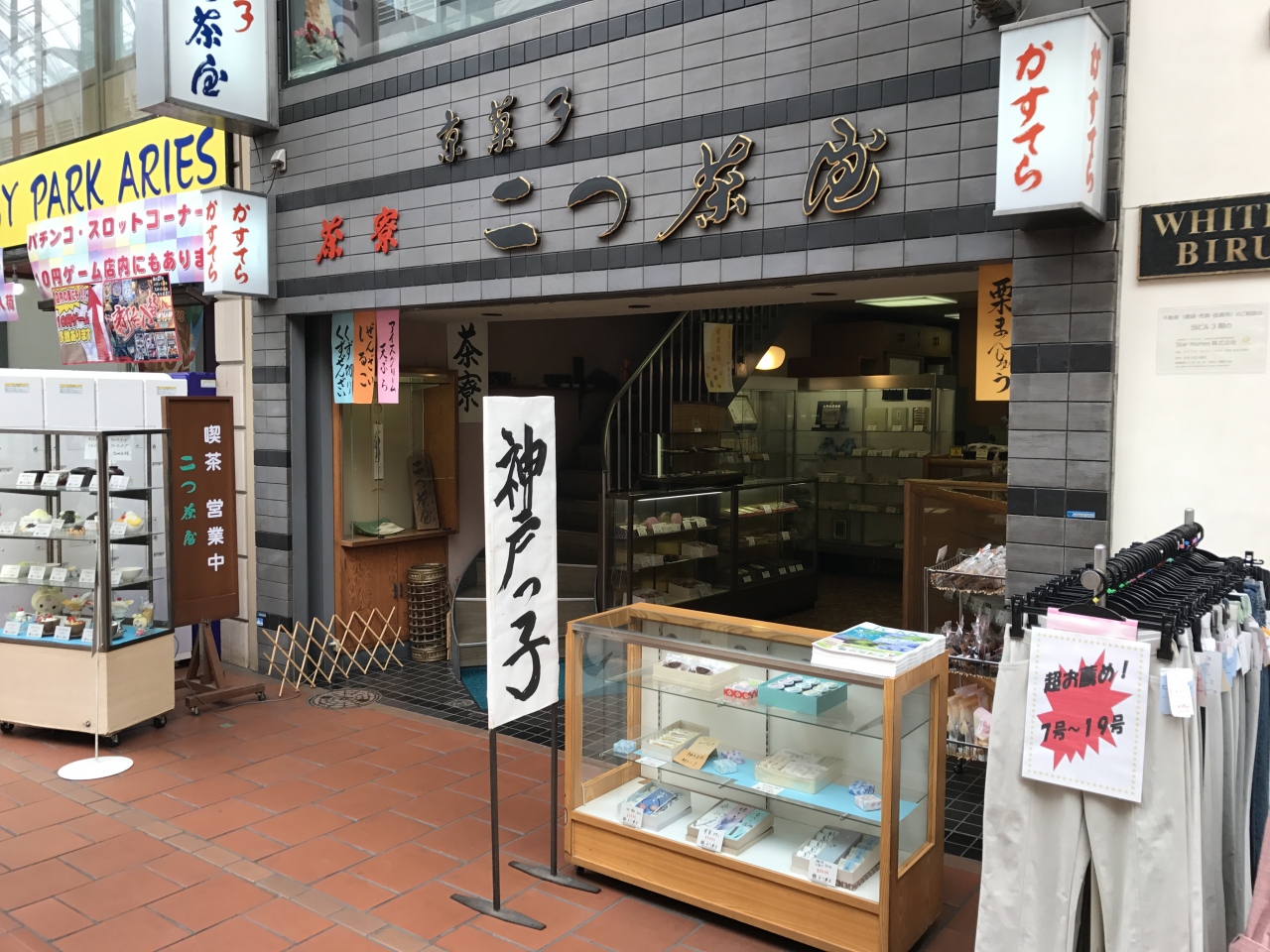 神戸の元町商店街にある和菓子店です。1階にはまんじゅうや、餅など上品な菓子が並んでいました。2階は喫茶店になっていて、パフェやかき氷などがメニューにあります。私は抹茶アイスを食べながら、通りを眺める。そんな休息をとりました。アイスは上品な感じで美味しかったです。