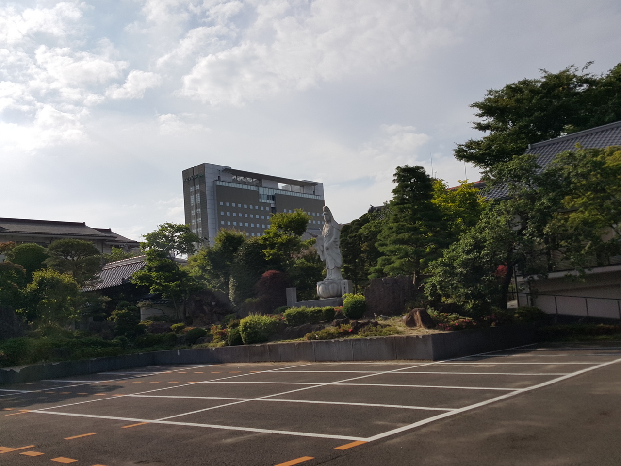 新寺通りの東秀院側から入ったので南門のようですが入ってすぐ、駐車場の向こうに綺麗な観音様がいらっしゃいました。