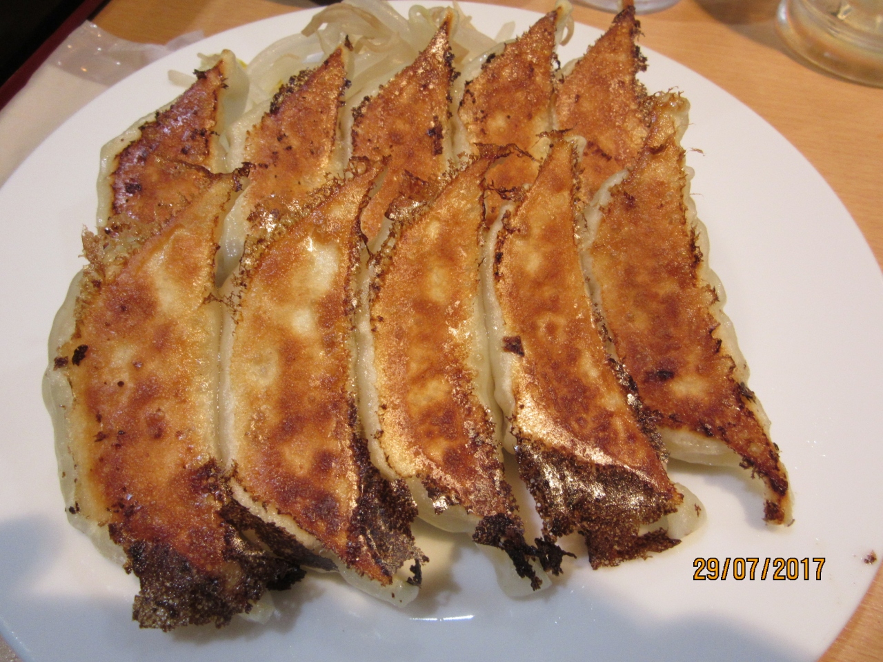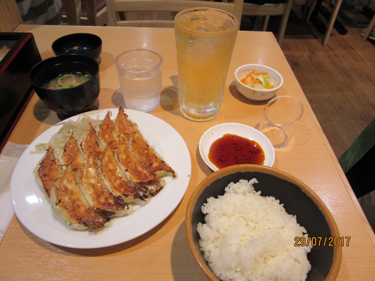 土・日は混雑するので限られたメニューのみの提供だそうで、餃子10個定食980円とハイボール450円を注文した。餃子は甘いたっぷりのキャベツと豚肉の旨みがマッチしてとても美味しかったので持ち帰り餃子も購入、15個900円だった。
