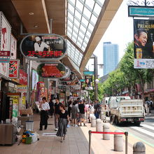 商店街には飲食店が多く並び、店前にロープの張られた店が結構多くあり、行列する店が多いんだなと思いました。大阪とはまたちょっと違った雰囲気が楽しめます。