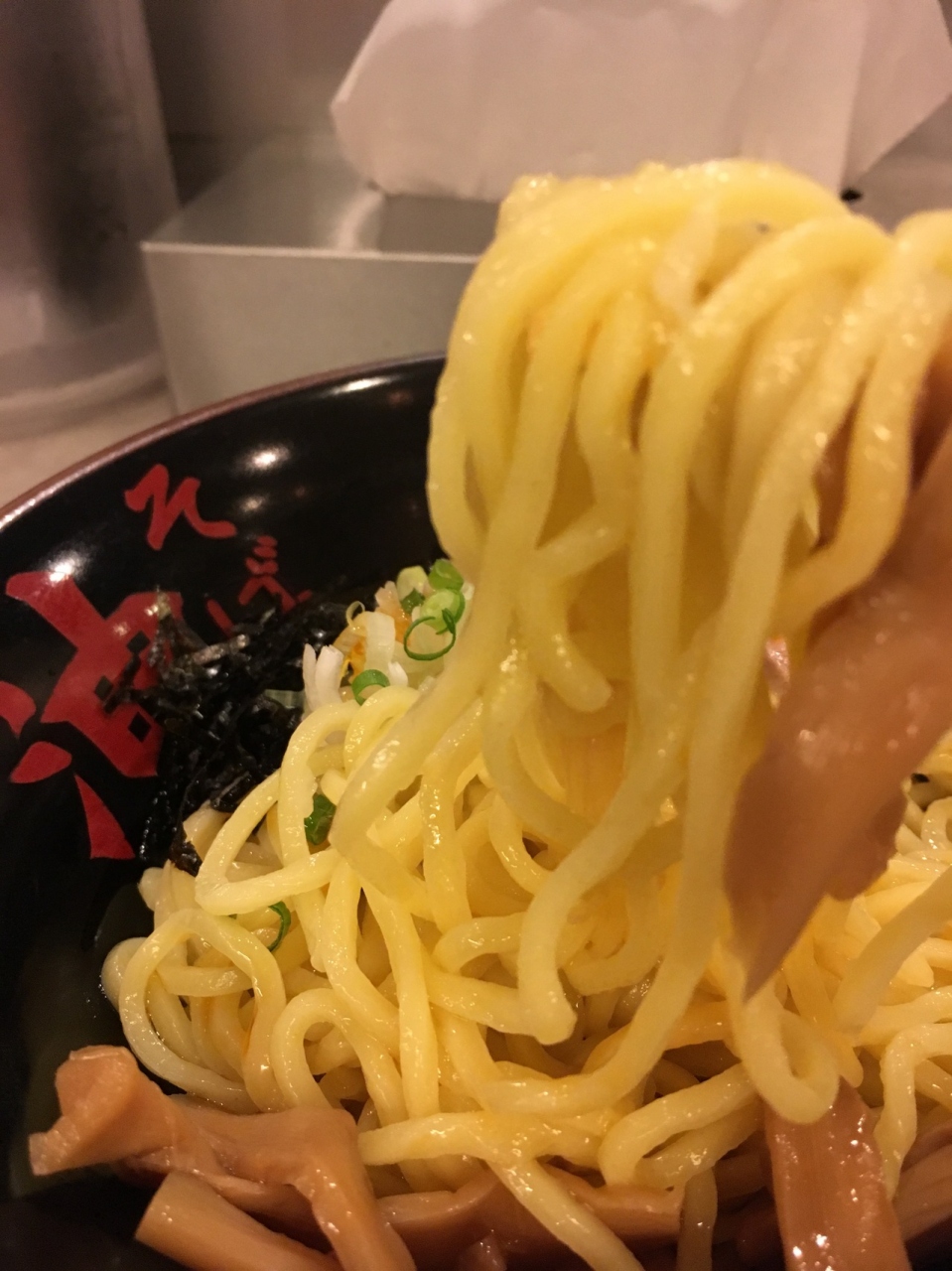 広尾駅前の商店街を進むと右手にあるのがこの油そば屋。階段なのでバリアフリーからは程遠いのですが、中のカウンターに座って注文をして、食べたら感激。油っぽくなくもちもちした麺が抜群。色々な調味料で自分好みに味も変えられる。