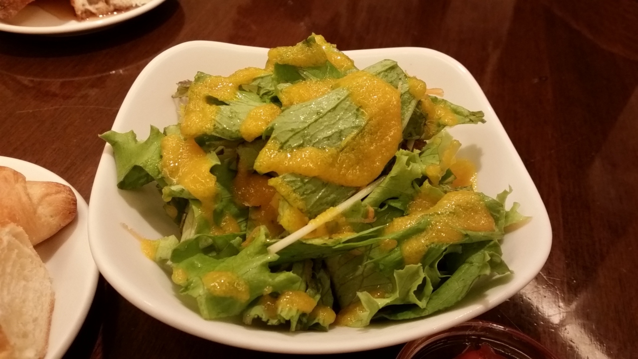 山種美術館の帰り、恵比寿駅まで戻ってランチしました。恵比寿駅の目の前の地下1階です。私はカルボナーラ風+ミートソース風÷2と言ったものをチョイス。パンとソフトドリンクはフリー、サラダと、水曜はレディースデーで一口ケーキがついて、980円でお得でした。