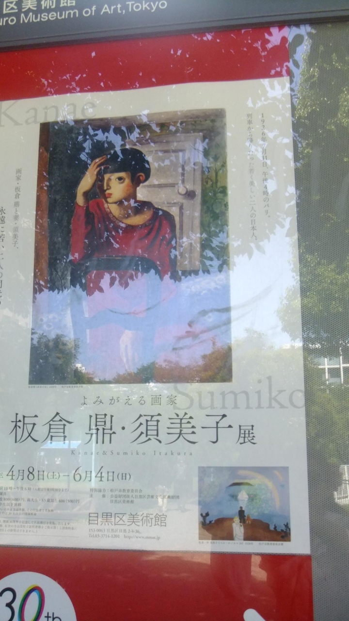 目黒の駅から徒歩でアクセスしました。目黒川沿いの公園の敷地内にある目黒区の美術館です。館内はそんなには広くはないですが、「板倉鼎夫妻」の企画展をやっていました。パリでの留学体験を基にした印象派的な作品(油絵)は、わかりやすく、親しみやすい雰囲気でした。混んではいなくゆっくり見られました。