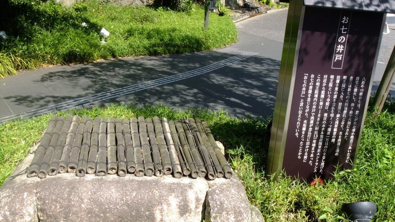 目黒雅叙園に行った際に、その雅叙園の入り口付近でこの井戸を発見しました。案内板があって、その案内によると、江戸時代に放火をしてまで恋人に会いたかったお七(死刑)のことを思って、その恋人がこの井戸で清めたとのこと。場所こそ目立つ場所だけど、こっそりした井戸なので、素通りする人が多いような感じでした。