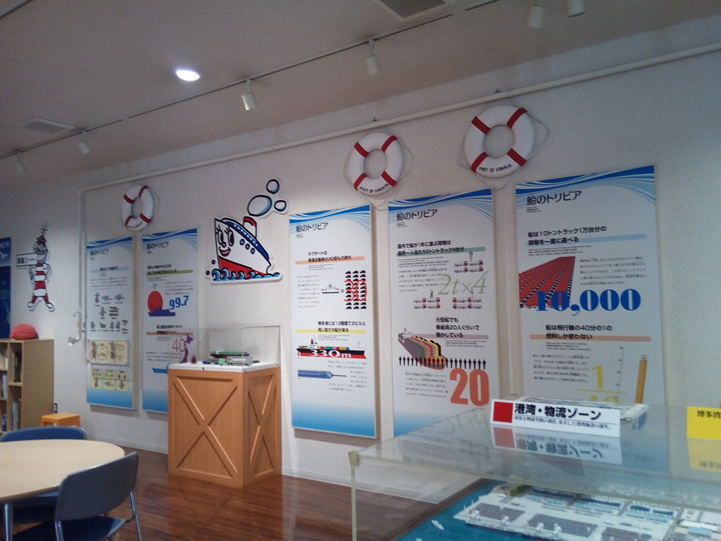映像やパネル、模型などがたくさん展示されていて、博多港の役割や歴史などを知ることが出来ました。子供さんの夏休みの自由研究にも人気があるそうです。