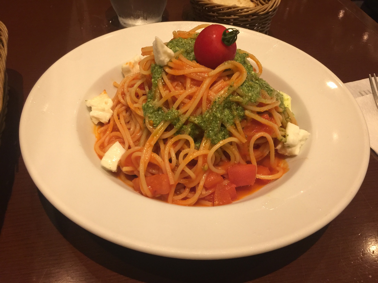 冷製トマトソースにジェノベーゼソース、そしてモッツァレラチーズ、、、ナイスですね(^ ^)