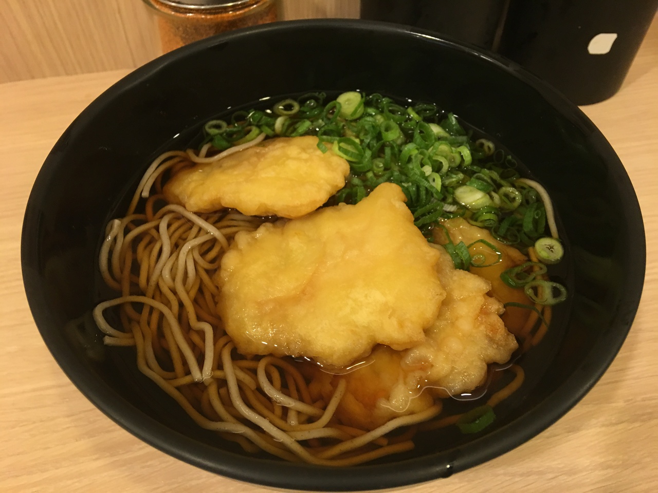 JR品川駅の構内にある立ち食いそば屋ね、注文したらすぐにサービスされるのが良いです。チケットは店外で購入した上で入店し、注文するプロセスです。お出汁が自分にとっては多少濃い印象でした。鶏の天ぷらを乗せたおそばですが値段相応とは言え美味しくいただけました。サクッと食べるのにちょうど良いです。女性の1人での入店も見られました