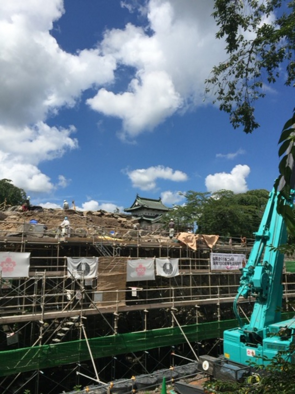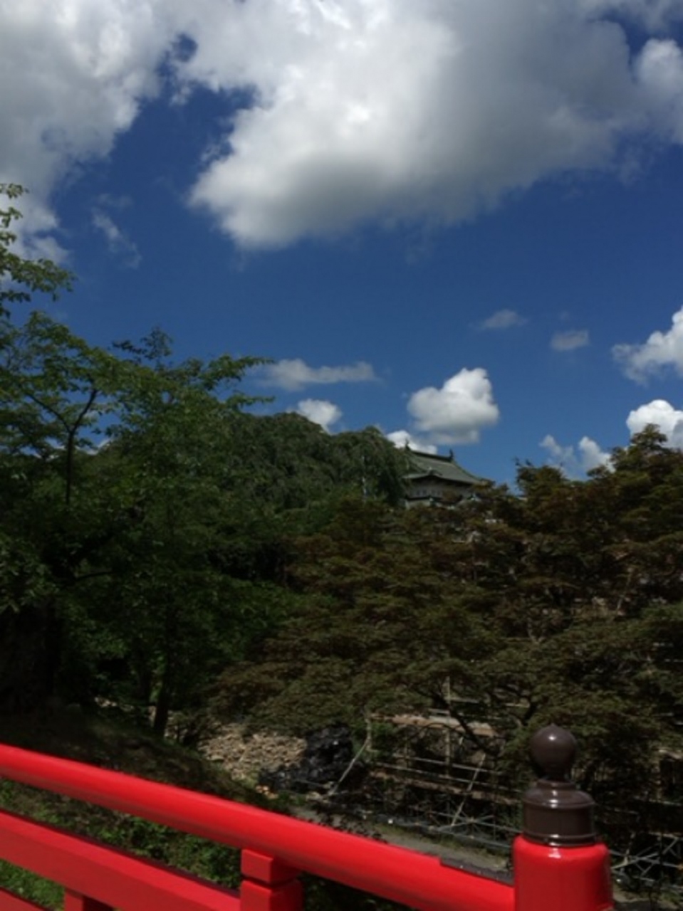 ねぷたまで時間があるので、桜で有名な弘前城へ。周りの敷地が広いのなんの。青々とした桜の木がいっぱい。大きいしだれ桜も何本もあって、春にまた来たい。やっとお城が見えて来たら、大規模な改修中。石垣を修理なのでお城の本丸を少しずつ移動したとか。何年もかかるとのことで、、景観的にはちょっと残念