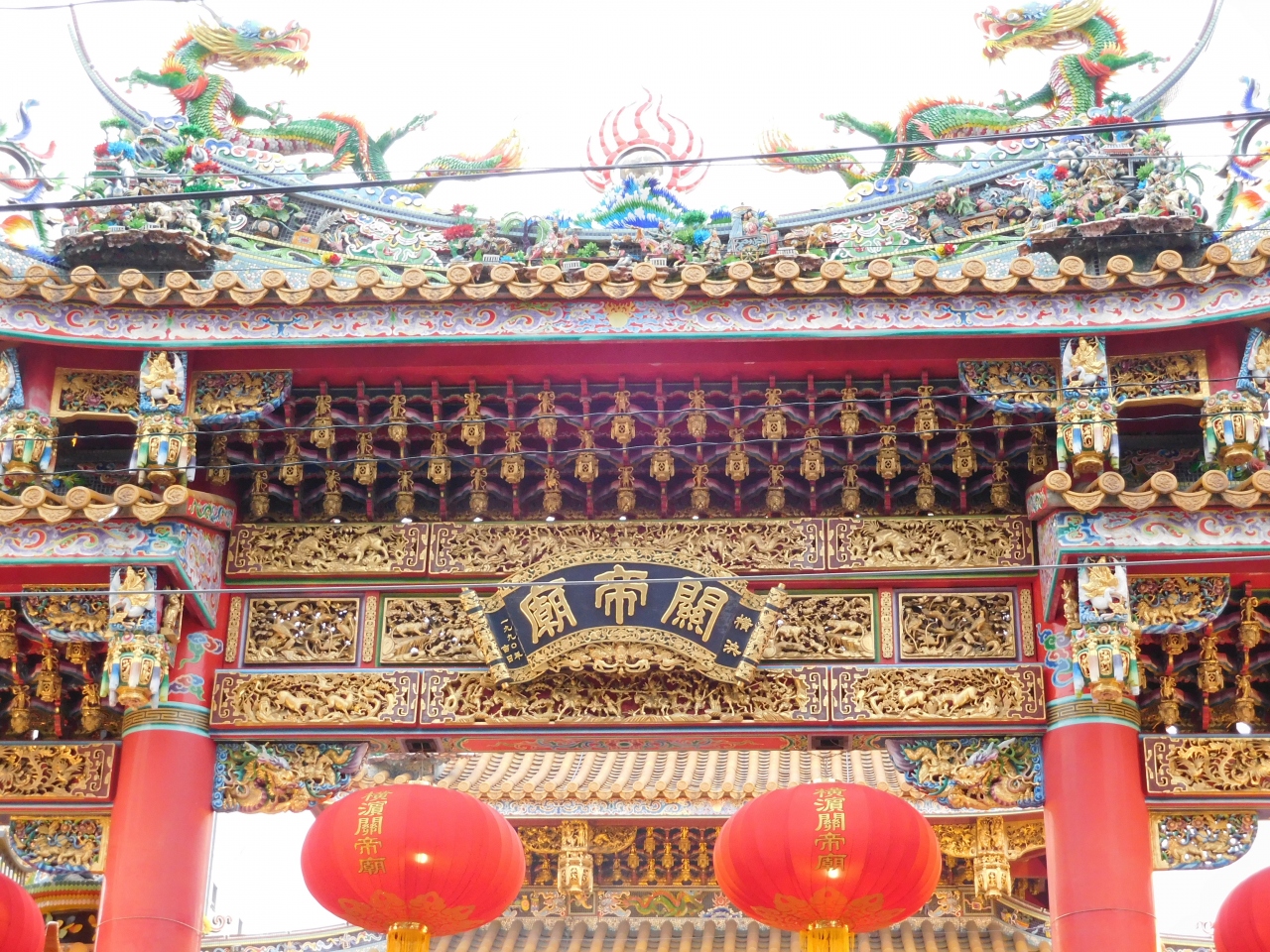 横浜中華街の関帝廟通り(JR石川町駅方面)にあります。とても煌びやかな装飾が施されており、独特な雰囲気があります。「商売繁盛」の御利益があり、参拝(線香をあげる)方法も、独特です。階段を上った高い位置にあるので、全体の写真が撮りやすかったです。中華街に来たという実感が出来る場所でもあります。