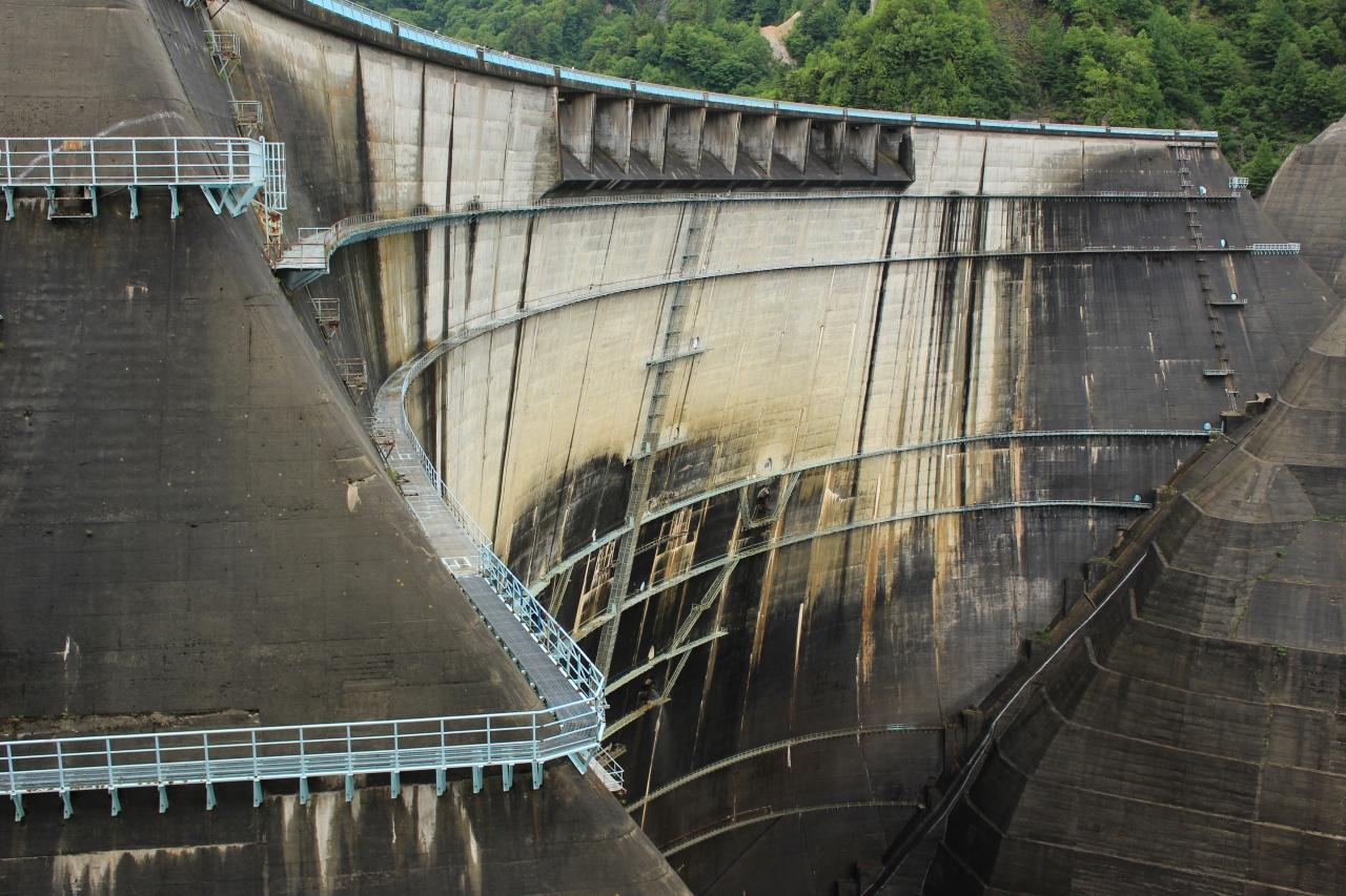 アルペンルートで乗り物を乗り継いで、黒部ダムまで来ました。巨大なダムは圧巻で観光放水をとても楽しみにしていましたが、前日の豪雨で残念ながら放水は中止となりました。展望台からダムを間近で見ることができます。