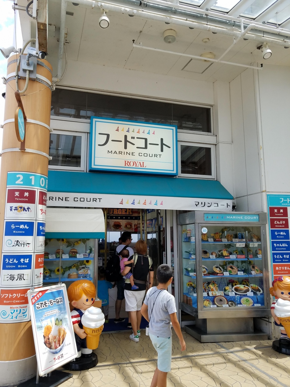 マリンコートは海ほたる5階にある大きなフードコートです。入口近くのハンバーガーショップをはしめ多彩な店が入っています。テーブル席とカウンター席かあり、カウンターでは、目前に広がる海原を眺めながら食事できます。