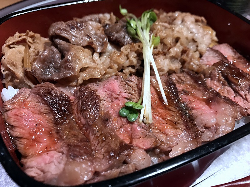 大坂ビフテキ重と大坂肉飯重がコラボした逸品です。