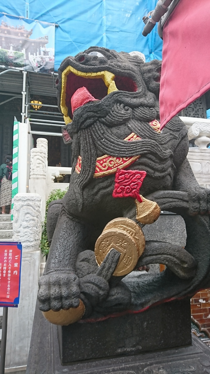 横浜中華街の中にある関帝廟は29年10月上旬まで外観は工事中で見えないのは残念でしたが、中に入ると普通にお参りすることはできました。自販機で500円で5本の大きな線香を買い順番どおりの香炉に刺していき中に入り四箇所の像に御参りするというやり方でした。私たちはやりませんでしたが、中国風のおみくじをやっている人もいました。