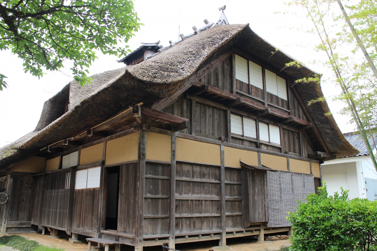 養蚕場を始めるにあたって創建当初の寄棟造りの破風窓のある妻の部分を切り取り、養蚕場として十分な採光通風の窓(高ハッポウ)としたので、現在のような美しい輪郭と反りをもった「かぶと造り」という独特な外観の屋根ができあがったようです