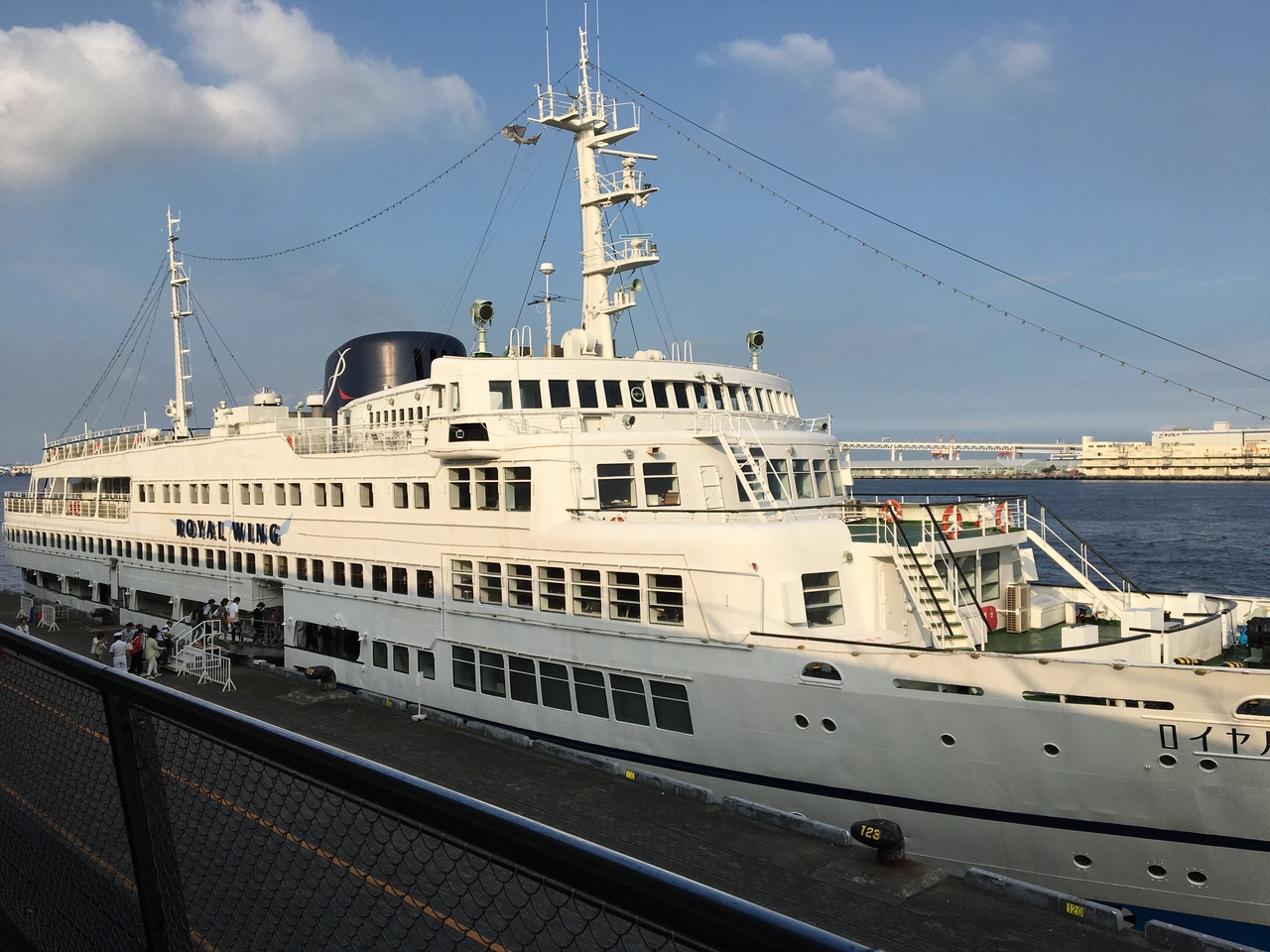カタログギフトでロイヤルウイングのディナーバイキングをチョイス。通常料金だと乗船料含めて一人8000円ほど。中華バイキングは結構美味しかった。食事を済ませて甲板へ。少し落ち着いたらまたレストラン。これを繰り返す。