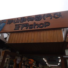 正門から入ると左手にあります。動物のぬいぐるみや文房具など動物のグッツがたくさんありました。お菓子などもクッキーに動物の絵が描いてありお土産にすると「かわいい」と喜ばれました。休憩所やレストランも併設されているのでバスまでの待ち時間にちょうどよかったです。