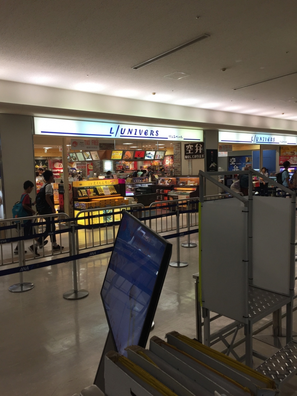 荷物検査口前のお土産屋さん。荷物を預けた後なんで利用しやすい場所にあります。大阪土産を買うために寄りました。伊丹空港自体古い造りなんで北館と南館と両方に少しずつショップがある感じです。搭乗口近くにはあまりショップないのでここが充実しているショップは最後です。