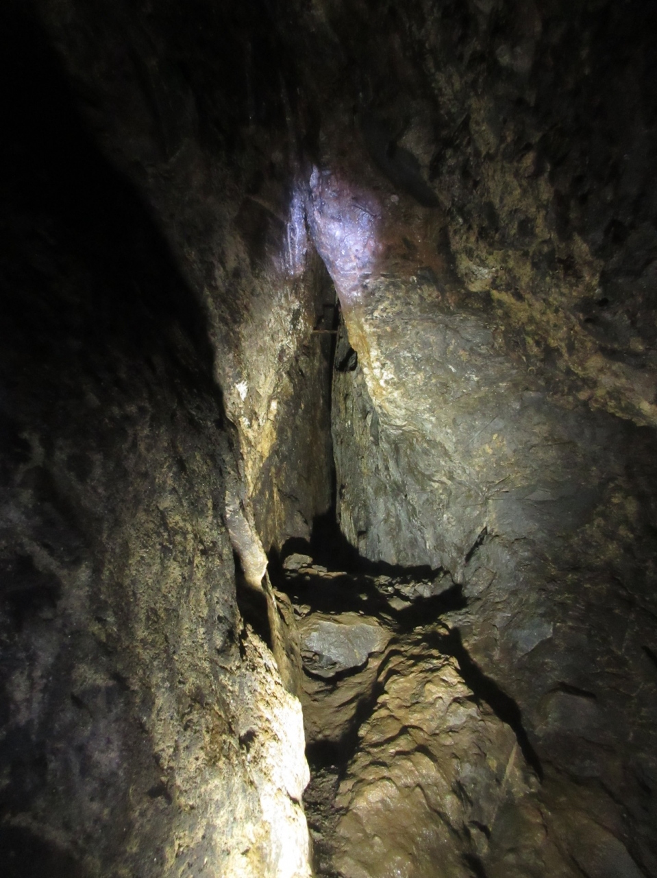 坑内は、各自のヘルメットライトと