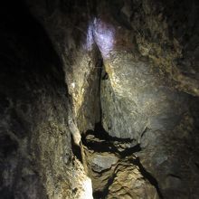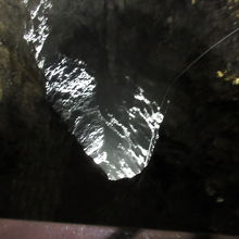 ガイドさんの照らす懐中電灯の灯りのみ。