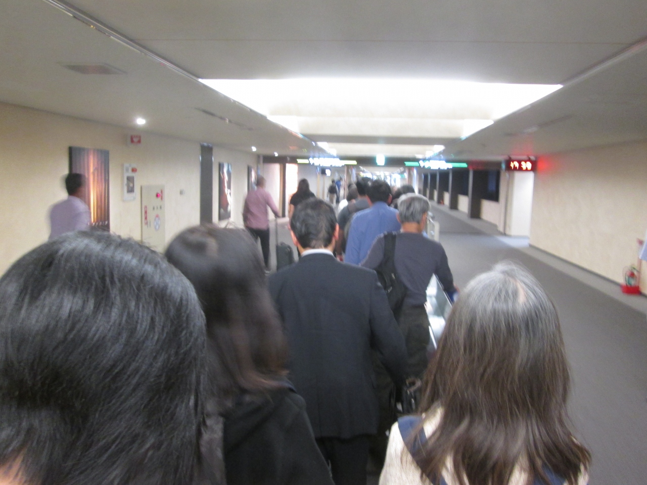 成田国際空港は広い空港なので、到着後、駐機場から入国審査場まで長い距離を歩きます。第2ターミナルで運行していたシャトルシステムが廃止され、サテライト側に到着すると、動く歩道が設置されていますが、審査場まで遠く感じました。
