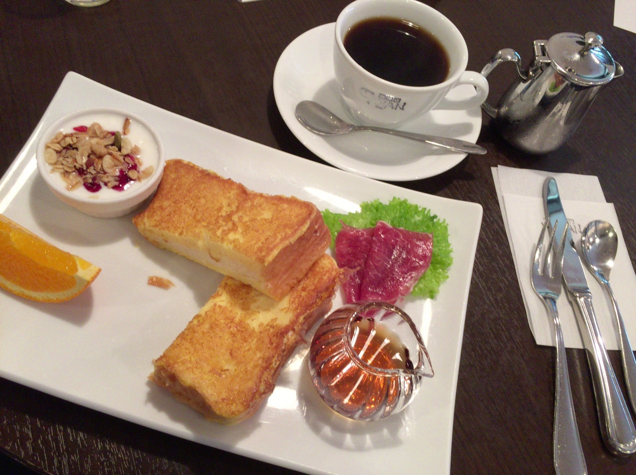 モーニング利用しました。コーヒーにフレンチトースト、生ハム、ヨーグルト、フルーツと色々ついたのを注文しました。朝から美味しいモーニングで元気がでます。お客さんは主婦のグループやひとりの男性などさまざま。にぎやかでもゆっくり寛げました。