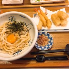 小盛りのご飯、天ぷら、好きなうどんがついたセットは、たくさん食べる男性とかには特に、お得だと思います。