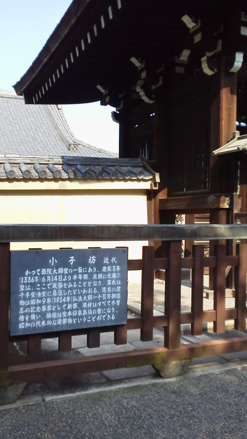 東寺の敷地内にある建造物のひとつですが、こちらは非公開となっており、内部は見られません。ただ、小ぶりながらも風格のある門と、由来を示した案内板があり(東寺はこの案内板があちこちにあってその場で由来がすぐわかっていいです)歴史を知ることができます。