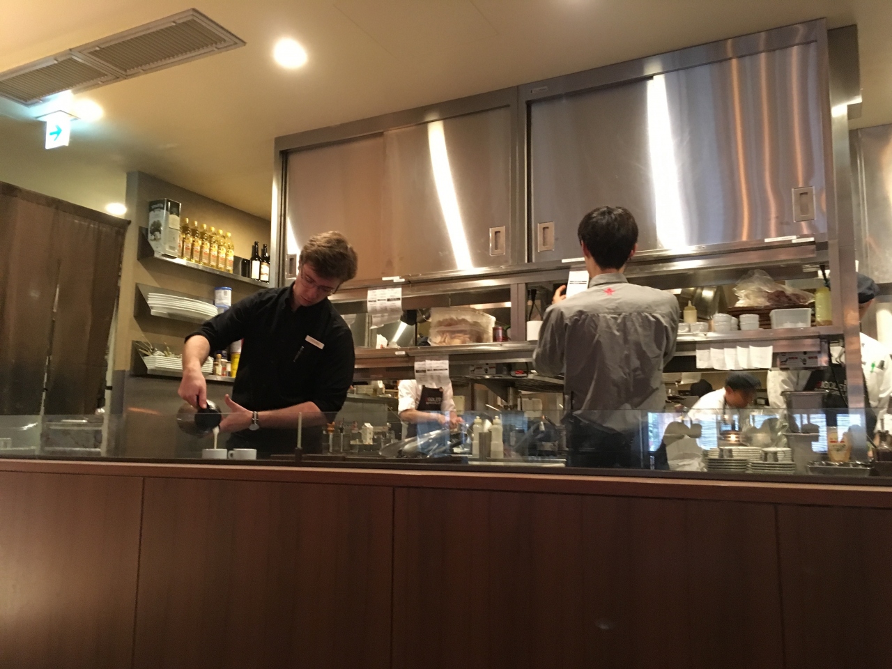 祇園にある町屋風の建物をいかしたレストラン。2Fにも大きなフロアがありますが、1F部分も広いので、脚が悪い人がいる場合は1F部分の予約をしたほうがいいと思います。イタリアンのプリフィクスコースになっているので、体裁もいいですし味もそこそこよかったです。