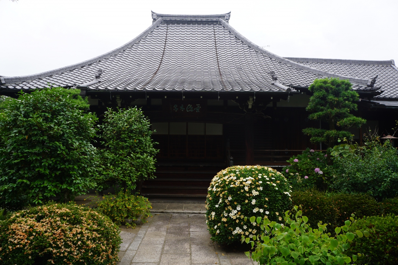 白毫寺は、五条の寺町の一角。観光の寺ではないようですが、境内に入ると何だかいい匂い。こんもりとしたつつじのような木に白い花が咲いていて、これはくちなしの花ですね。盛りが過ぎると枯れたような茶色になってしまいますが、この匂いはとてもいい。朝の気持ち良い散歩になりました。