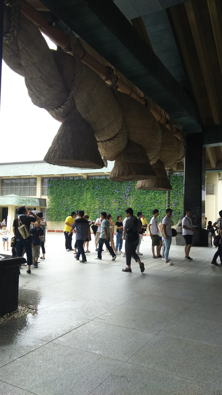 お盆の真っ只中に立ち寄りました。さすがにすごい人で駐車場へ入るまでに30分以上待たなければいけませんでした。お参りする人の列も長かったです。大きなしめ縄は実際に見上げると落ちてこないか怖くなるほど大きくて立派でした。