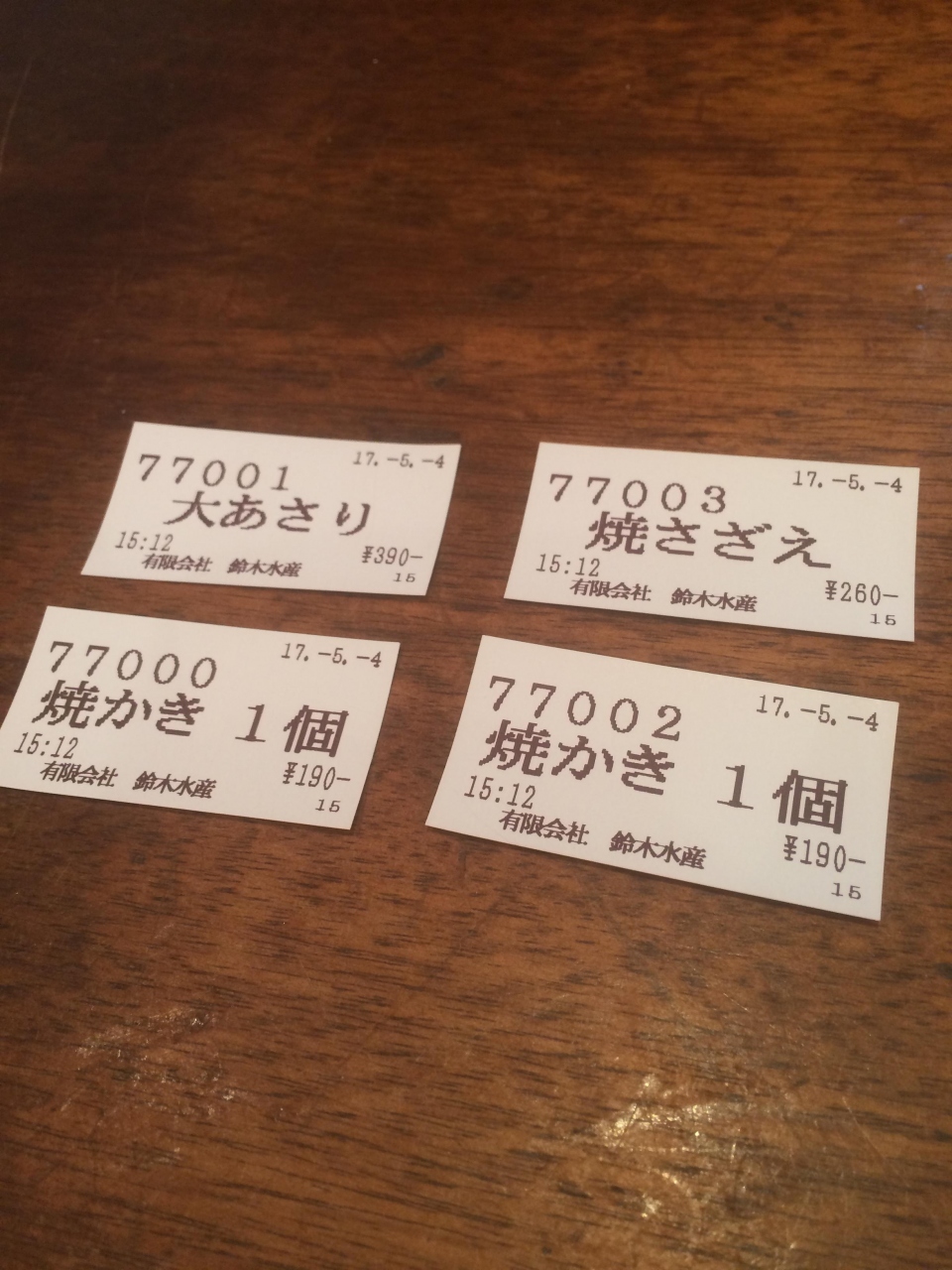 牡蛎、大あさり、さざえを注文
