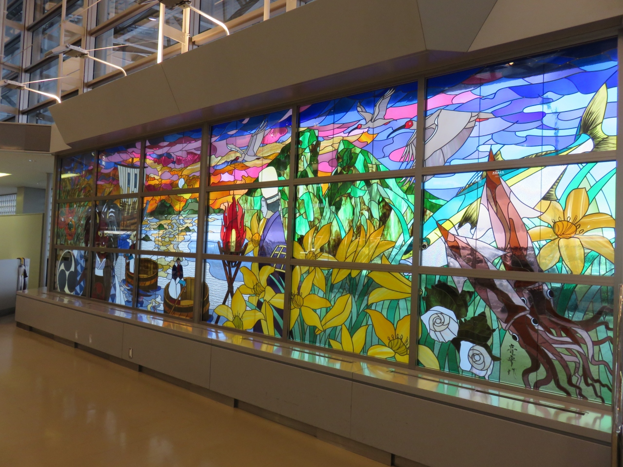 観光情報が検索できる情報検索コーナー、観光地のPR映像や新潟ふるさと村のイベントの様子を放映する大型ディスプレイ、新潟ふるさと村新着情報を検索できるインターネットコーナーなどがありました。また、カフェコーナーでは米粉を使ったフードやドリンクを日本庭園を一望できる席で楽しむ事が出来ました。