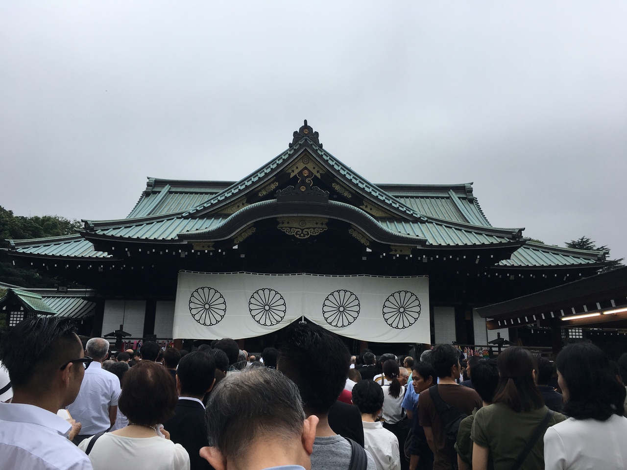 72回目の終戦を迎えた今日、靖國神社を参拝しました。8時半頃に到着すると、既に参拝する人達で行列が出来ていました。並び始めて、20分くらいでお参りをする事が出来ました。あいにくの空模様の為か、時間が早かったこともあり思ったほど混んではいませんでした。御朱印も時間が掛からず頂きました。創建150年記念の御朱印帳もありました。