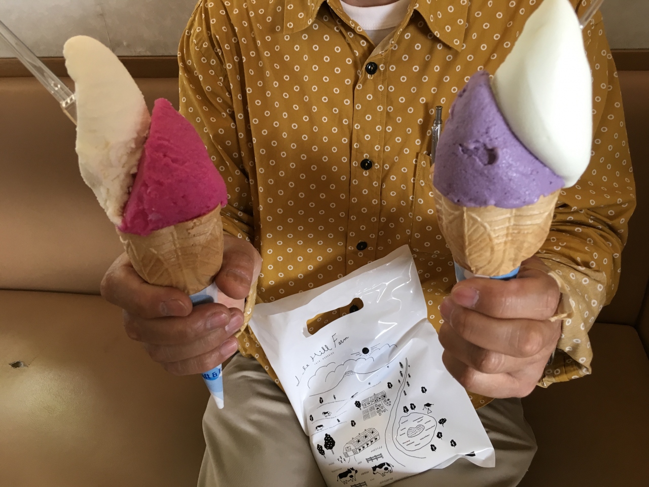 他では見たことのないモノを食べようと思い、私は、赤紫蘇のシャーベットと白花豆、主人は、ブルーベリーミルクとブルーソルトを。甘さ控え目で、スッキリとした味で、美味しかった!