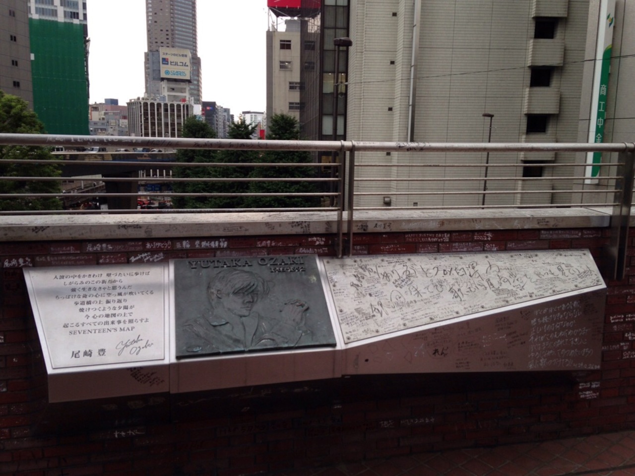 記念碑の周りにファンによるものと思われる書き込みがたくさんあります。