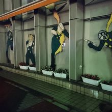 建物のガラス面には石ノ森章太郎先生の「サイボーグ009」のキャラクターが描かれています。マンガの街らしさが伝わってきます。