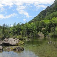 河童橋から歩いて1時間ほどなので高齢者が多かったです。道は整備がされていますが、山道なのでトレッキングシューズがおすすめです。穂高神社の奥の宮で、池のほとりに入るのには拝観料がいります。天気と時間によって水が透明度が高くきれいです。歩道は二の池のまでです。ベンチもなく立って見るだけなので、そんなに混雑はしていません。木道が壊れているので注意が必要です。興奮した女性のグループが大きな声を上げていたのが残念でした。