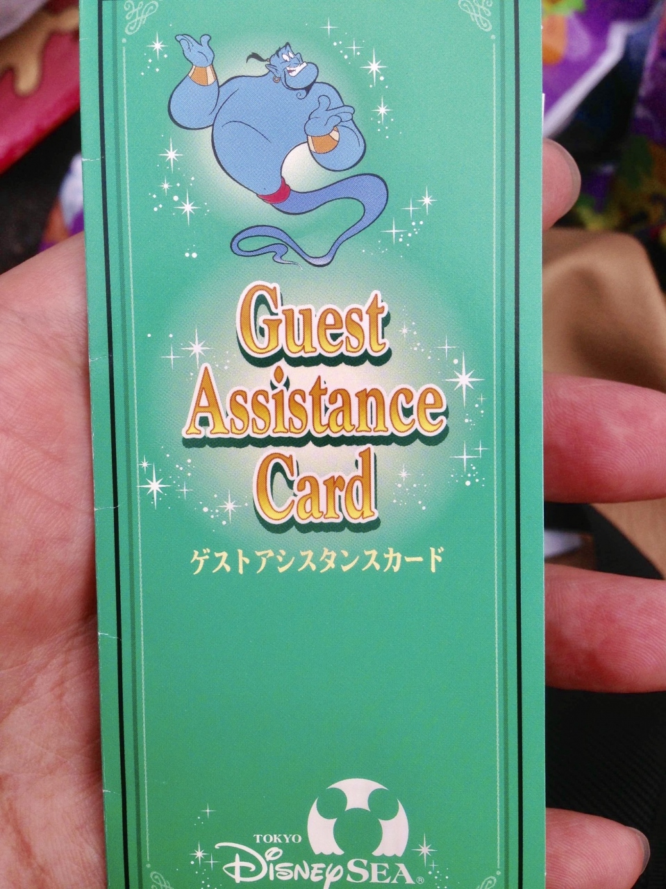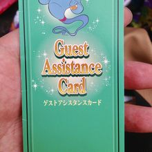 ゲストアシスタンスカードと言う怪我や障害、妊娠中等の長時間立ったまま待つことに難のある方への配慮です。