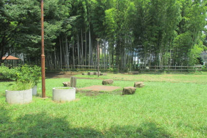 たけのこ公園は、西武新宿線の花小金井駅と小平駅の間、狭山・境緑道沿いです。(花小金井駅から20分、小平駅から25分と案内されています)たけのこ公園と聞いて、竹林が拡がっているのかと思ったらバーベキュー公園でした。園内に点々とバーベキュー・サイト(レンガが敷かれています)があります。利用には申請が必要とのことですが、火が使えない公園が多い中、貴重な場所だと思います。場所取り競争は激しいかも知れませんが・・・。
