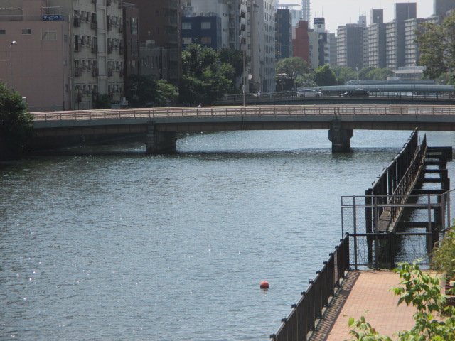 この橋は道頓堀川にかかる橋の中で、最もノーマルな橋です。言い換えれば特徴がないということですが。いわゆる道頓堀の中心のグリコの看板から離れてしまうので、グーンと人通りも少ないし、橋を行きかう人も少ないです。道頓堀の外れという界隈にひっそりとあります。