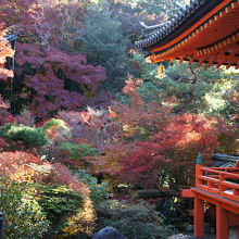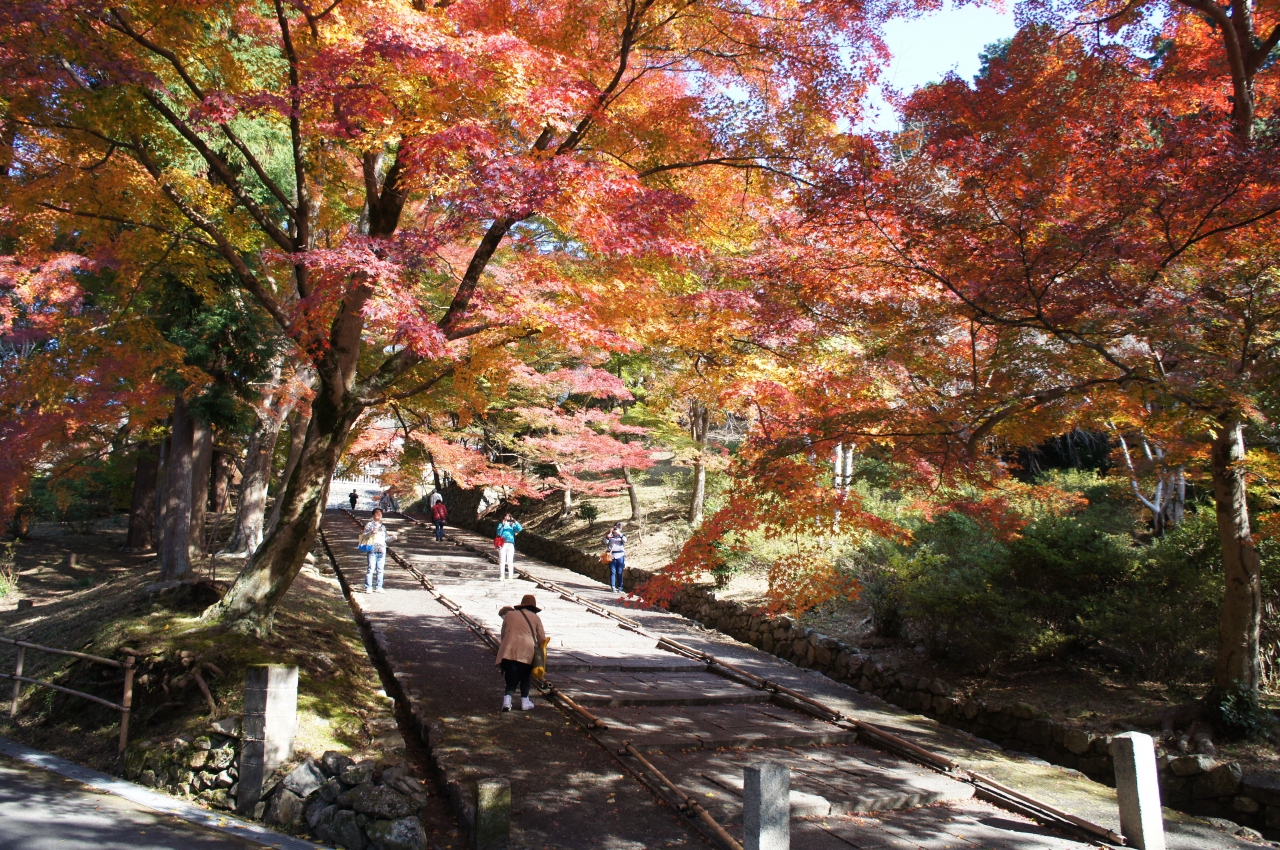 紅葉の季節に行きました。山科駅から徒歩20分、結構遠いのでタクシーを利用しても。宸殿内はガイドツアー形式で僧侶の方が案内してくださいます。ちょうどドウダンツツジが真っ赤に色づきとても見事でした。動く襖絵や天井龍などの見どころをユーモアを交えて丁寧に説召していただきました。