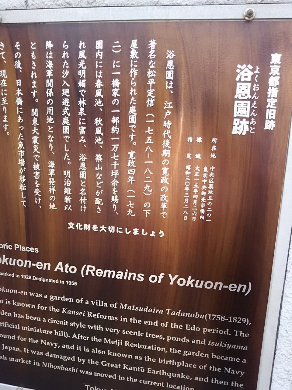 江戸時代にはこちらの周辺は松平家の所有の土地で庭園があったそうです。関東大震災で築地の市場が日本橋より移ってきてこちらに出来上がり、っかりその面影はありません。明治期に入り海軍関係の施設がその前の段階で出来ていたそうです。幕末から江戸の流れを感じざるを得ません