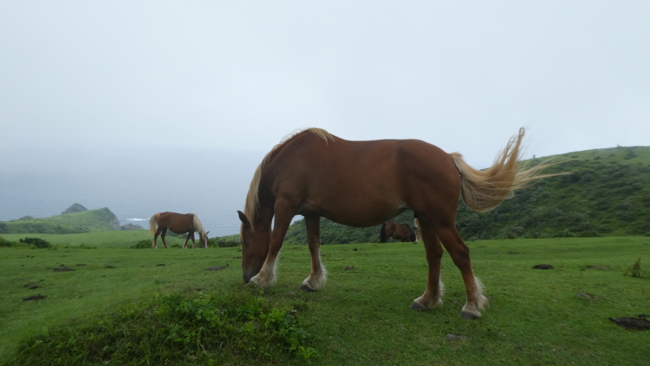 展望台に行くまでのそこここで、牛や馬が草を食んでおり、中には親子連れなどもいて、大変微笑ましい。