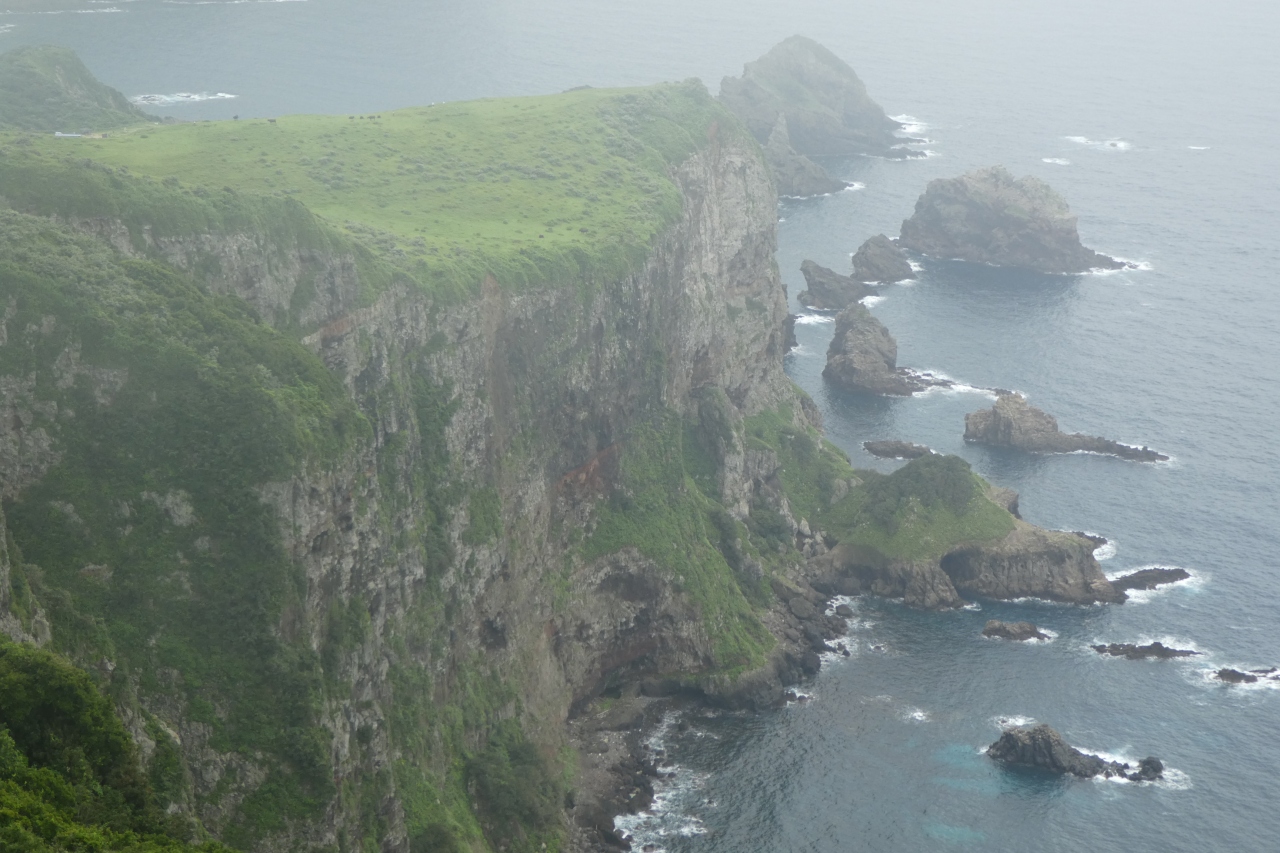 そして突端から見下ろせば断崖絶壁、ジオパークの名にふさわしい光景が見られる。