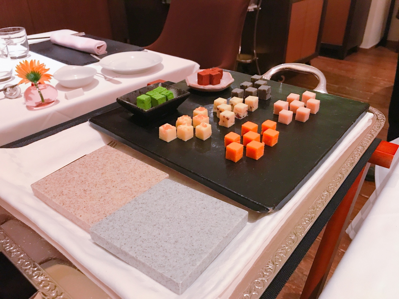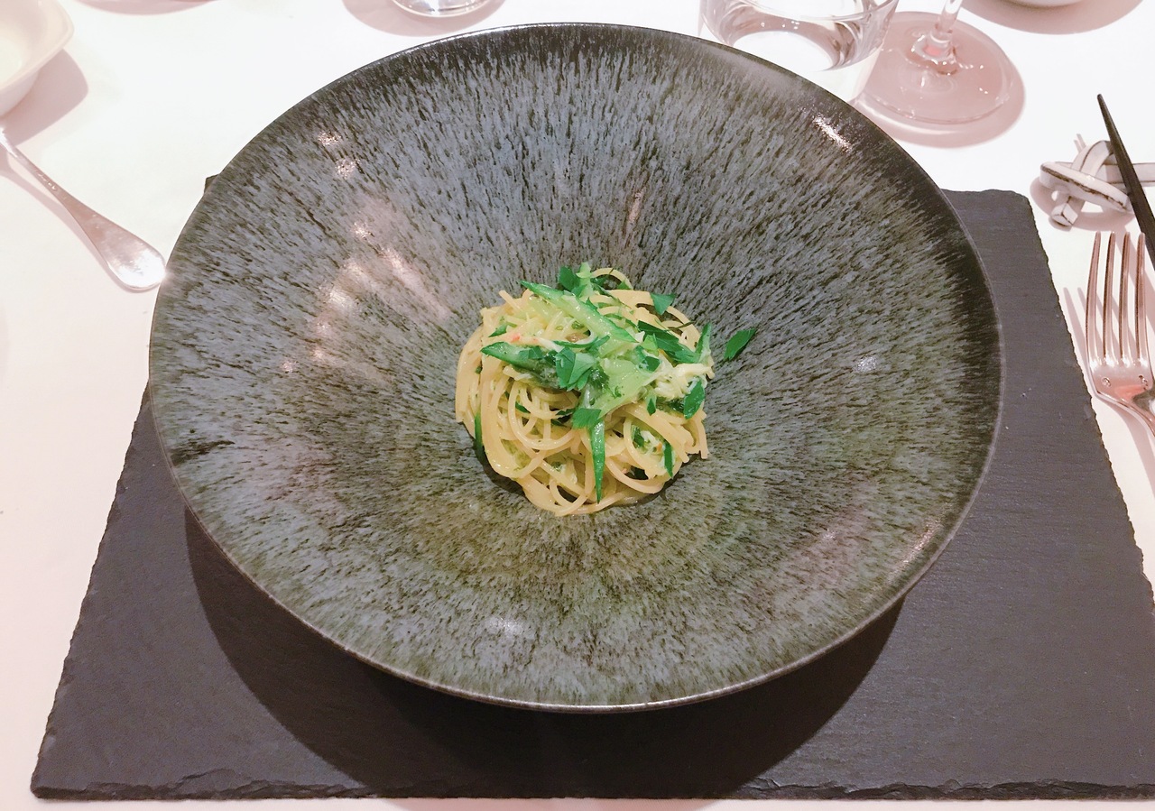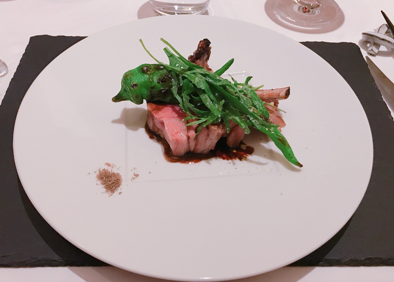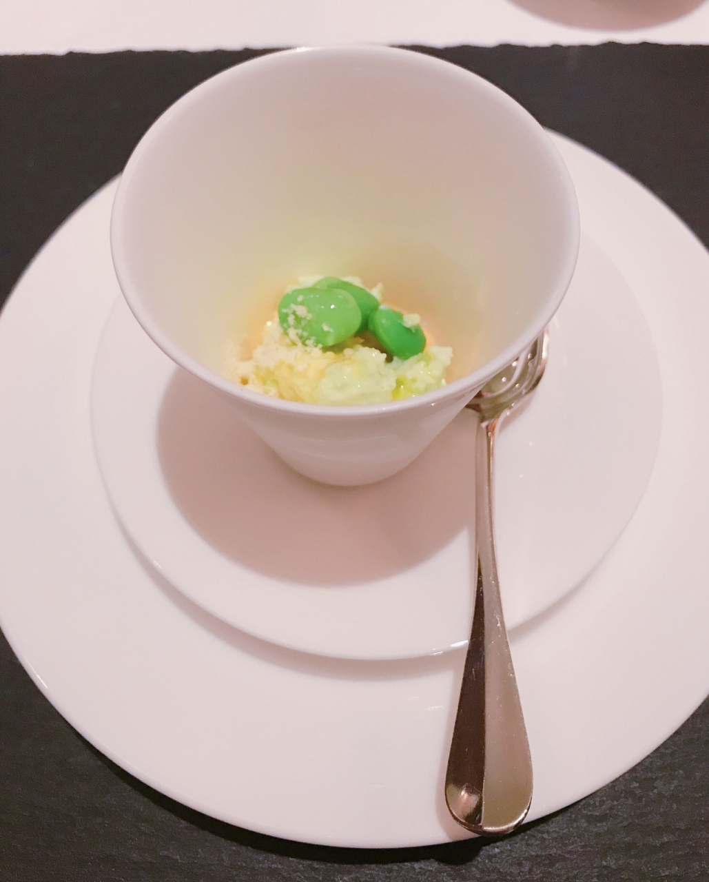 2階にあり窓から通りを少し見ることができます。最初のリコッタチーズと枝豆のムースは甘味がある中にウニの塩気のあるソースが合っていて旨味が出ています。パンにつけるバターはバターと生クリームとオリーブオイルミックスされていてトロトロしていました。バターのみと違って風味が変わりました。パンは2種、フォカッチャが温かくてふわふわで美味しかったです。お肉はとても柔らかくて塩や何もつけなくても美味しかったです。ナイフの切れ味が良くて肉を口に運ぶまで速く気持ちが良かったです。
