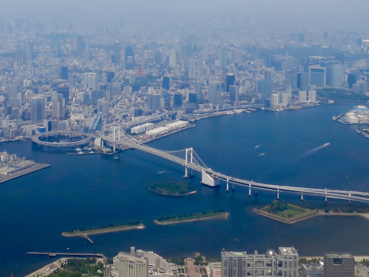 吊橋自体の大きさは瀬戸内海の巨大な橋に比べると見劣りするものですが、大都会の入口にビル群を背景にして伸びる姿は都会の風景をより一層際立たせるもので格好が良いです。また橋上からの眺めも東京臨海部の高層ビル群を一望できて見事です。あまり機会はありませんが海上から眺めるのもまた素晴らしいです。