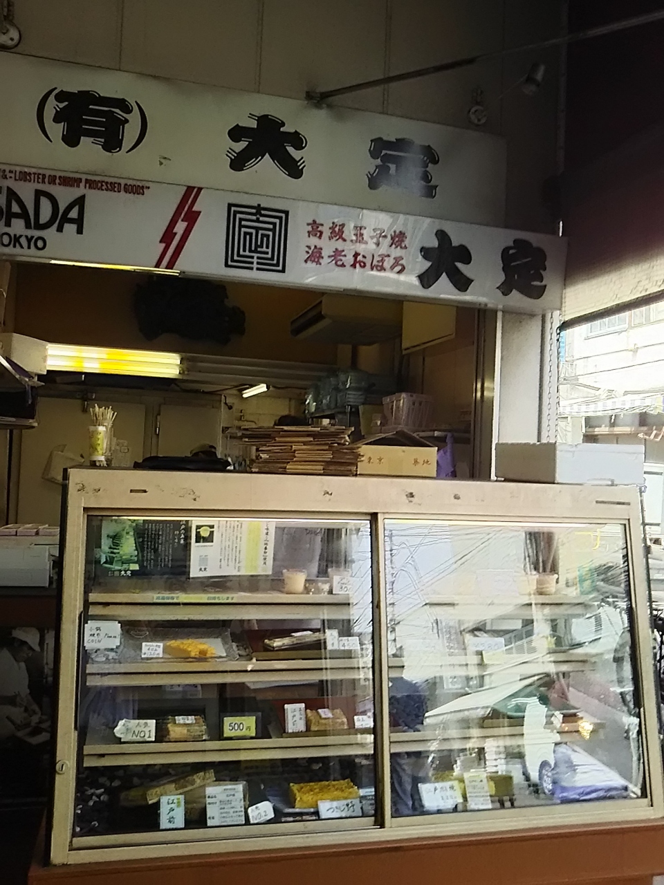 築地の場外にもこちらのブランドの卵焼きの店はありますがこちらの築地の場内の店の方が昔ながらの感じの印象です。ただしお客さんを呼び込むような感じで串に刺した卵焼きをお客さんに進めてる姿を見ると昔ながらの雰囲気ではなく、少し残念な気持ちになります。それでも美味しい卵焼きので自宅用に持ち帰りで購入します
