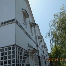 なまこ壁の蔵が並んでいるデザインの裏側と正面入り口のモダンさのギャップに驚く