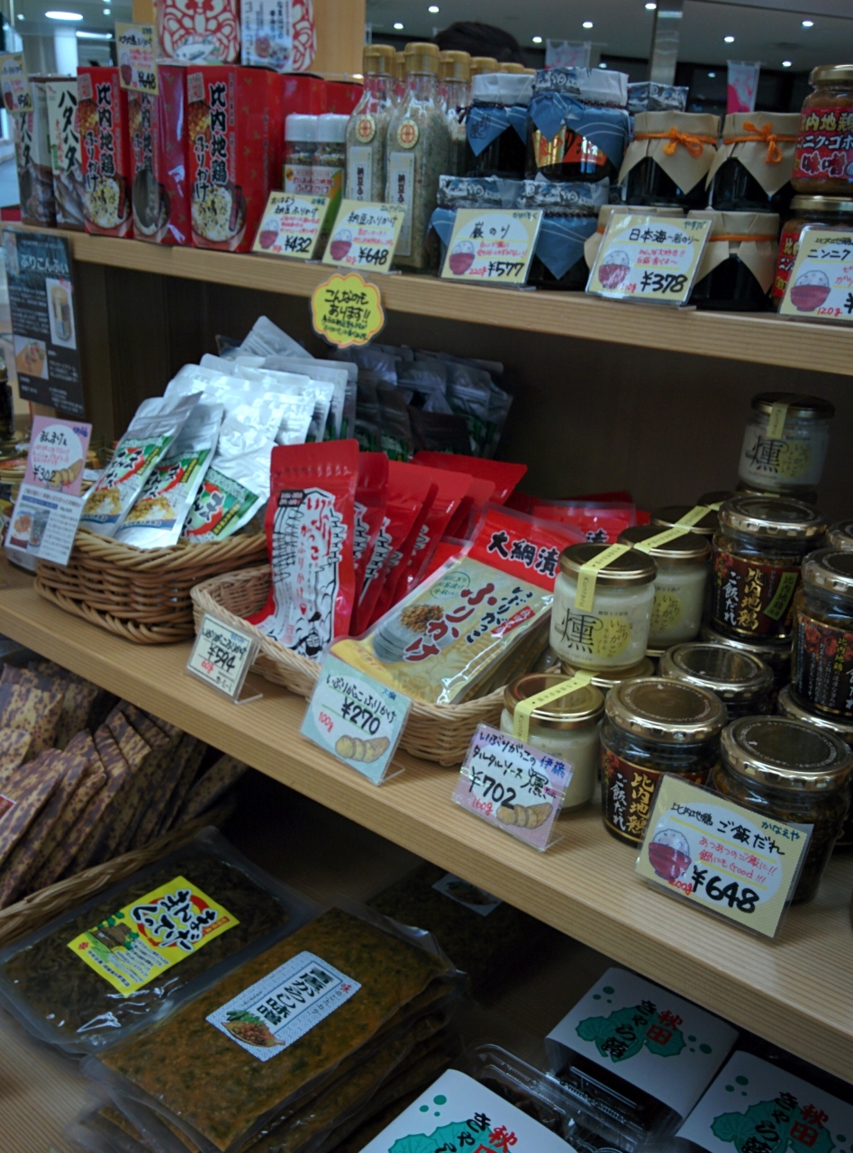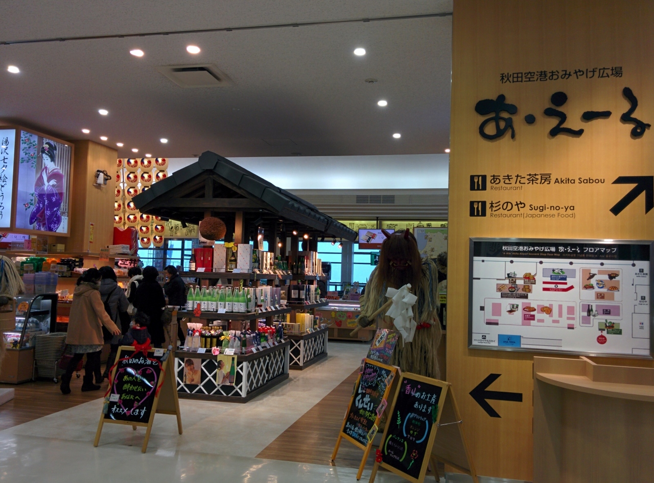 規模の小さな地方空港だが、ショップエリアを充実させ、秋田に来た気分が盛り上がる展示物を配し、空港でのひと時を楽しめる工夫を凝らしてある。