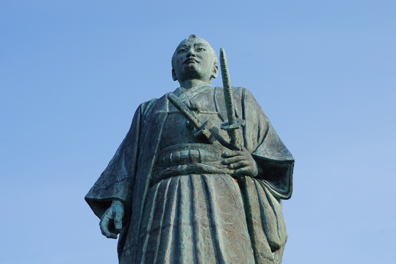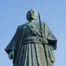 殺風景な広場のような場所でもうちょっと適当な場所はなかったのかなあと思わなくもない場所ですが、奥に建つ像の姿は写真で見ていた通り。意外に切れ長の微妙にイケメン風の顔。高知では龍馬よりも半平太の方が人気があるように思います。